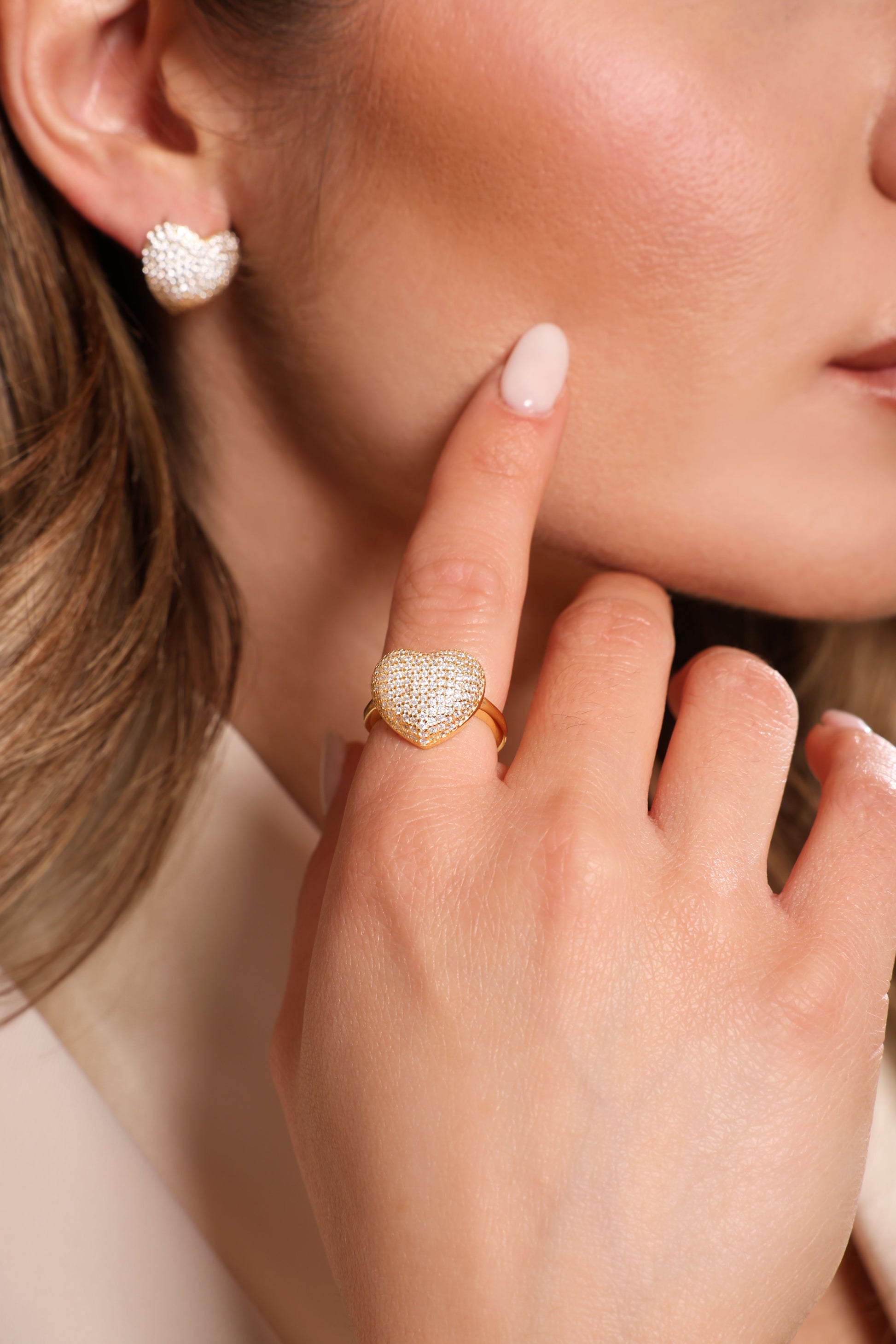 Caratterizzato da un cuore bombato completamente ricoperto di micro-cristalli luminosi, dona un effetto scintillante che cattura lo sguardo. Un design audace e romantico al tempo stesso, perfetto per chi ama farsi notare con classe.