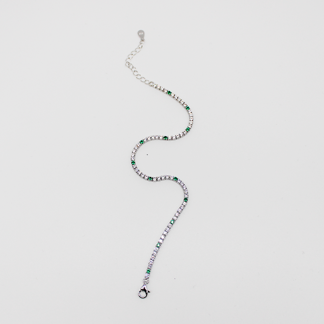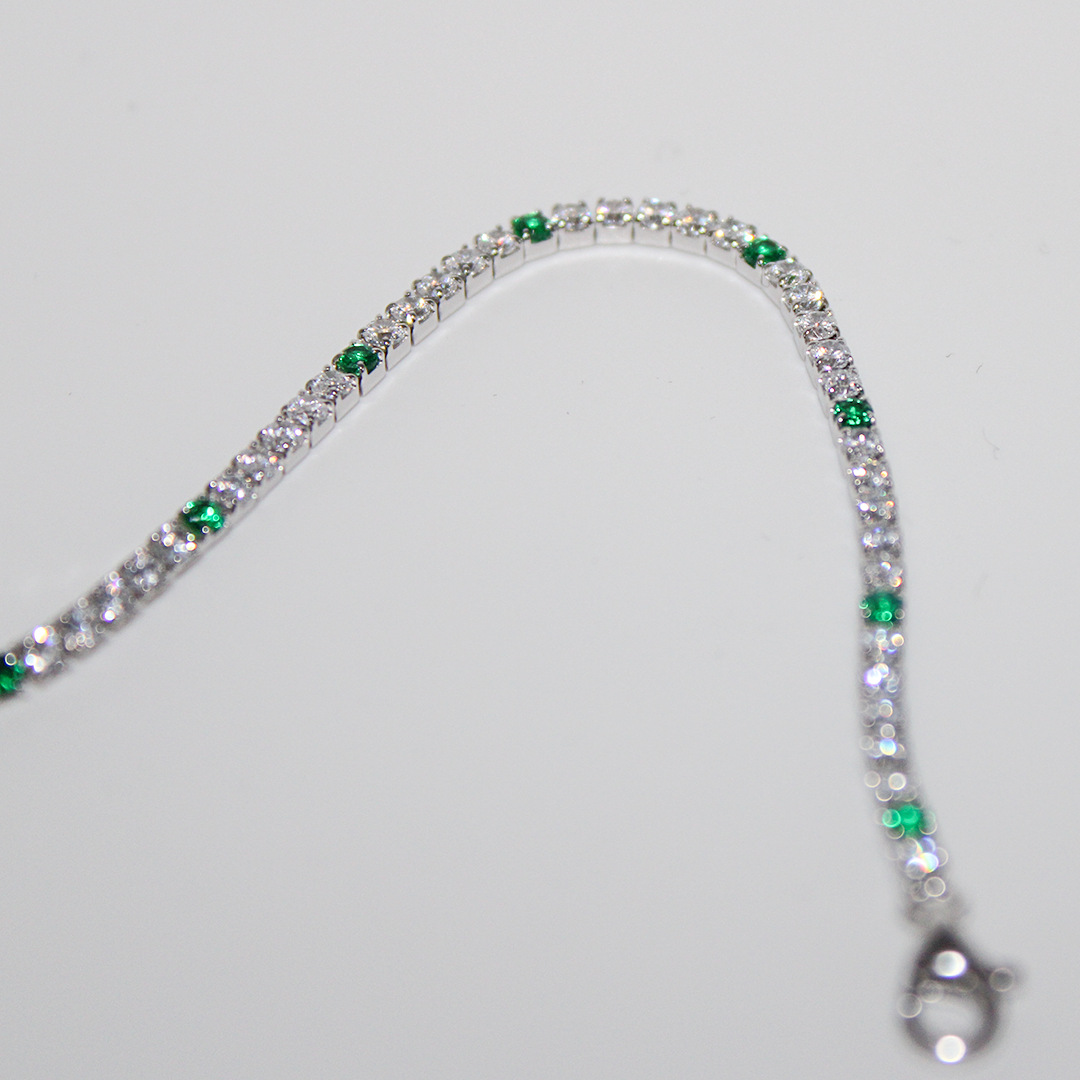 Questo bracciale tennis bicolore aggiungerà un tocco di colore verde al tuo outfit.